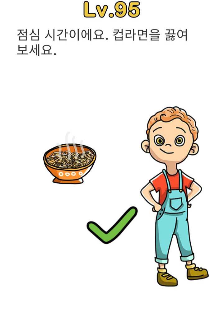 레벨102 정답 : 라면 넣고 물 넣고 손으로 뚜껑을 덮습니다