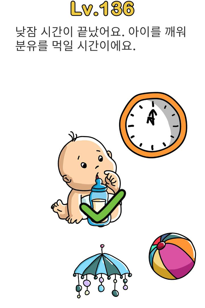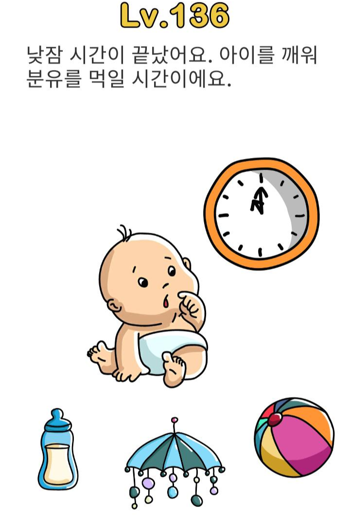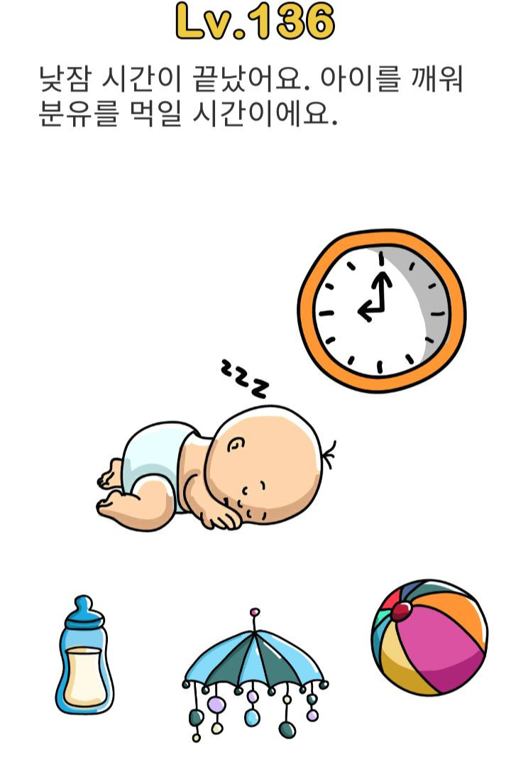 레벨139 정답 : 시계의 돌려 아이가 깨면 우유를 줌