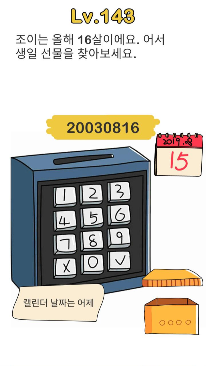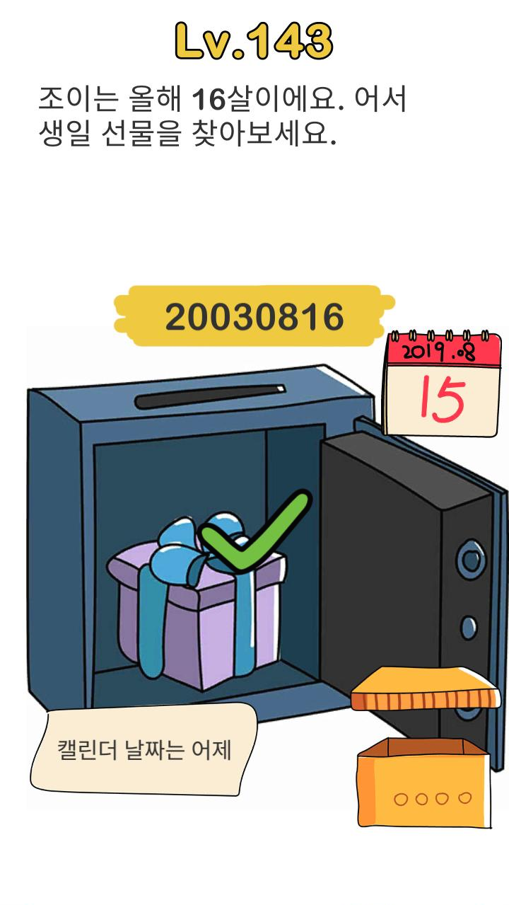 레벨149 정답 : 박스 속 쪽지를 꺼내고 → 20030816 확인버튼(V)