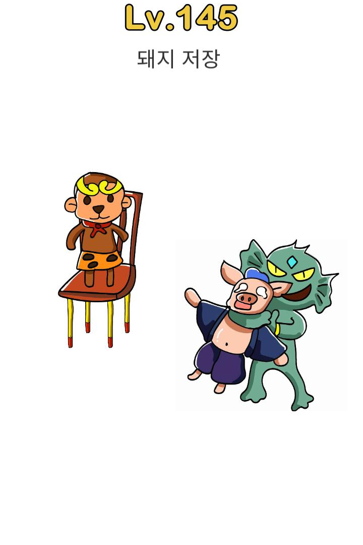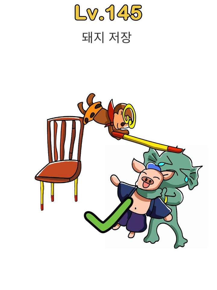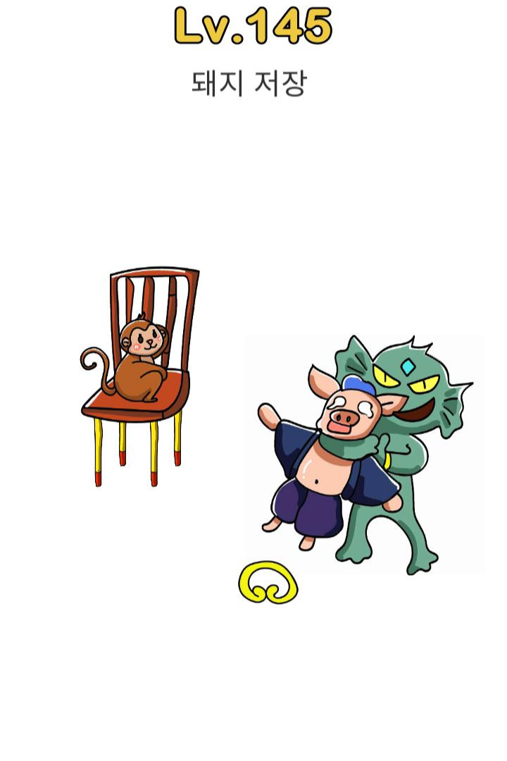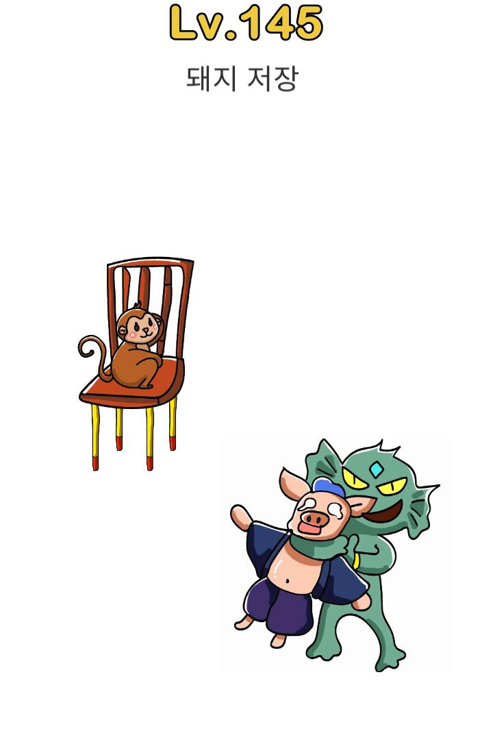 레벨151 정답 : 요괴를 흔들면 머리띠가 떨어뜨림-> 머리띠를 원숭이에게 씌우면 손오공이 됨->의자다리를 하나 빼서 손오공에게 주면 돼지를 구함
