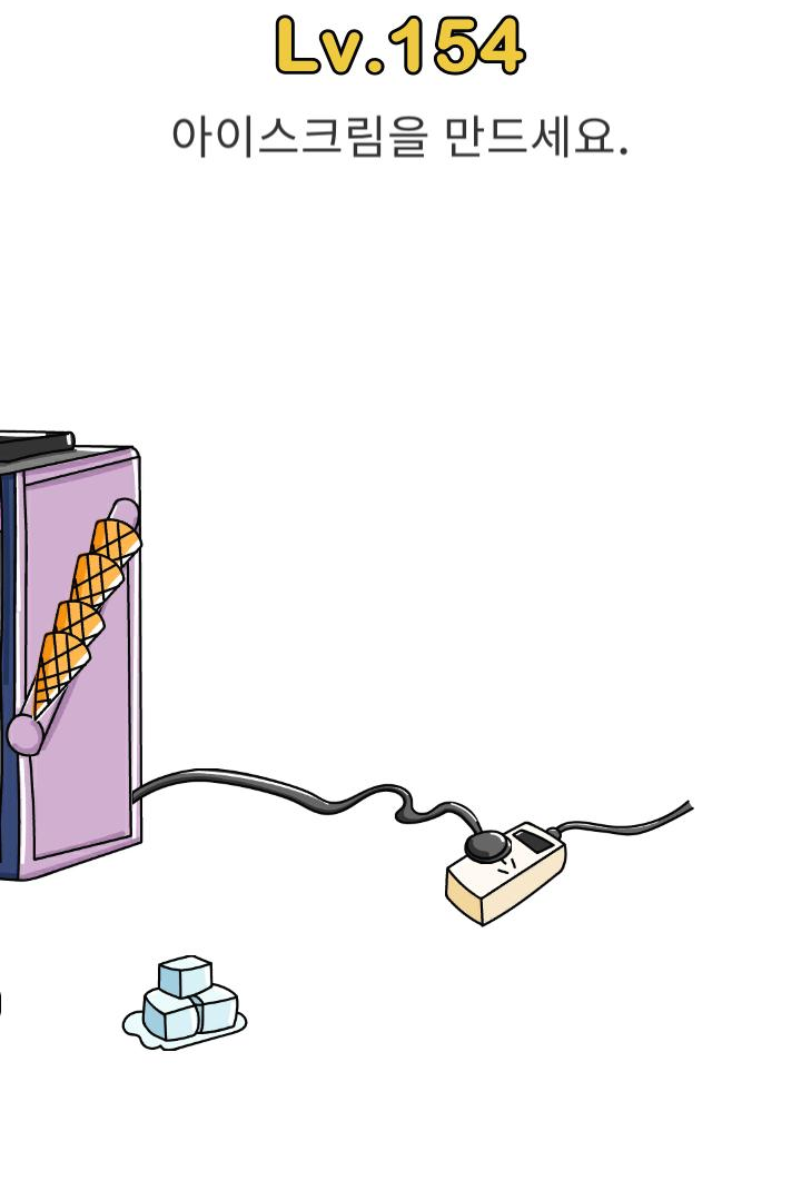 레벨161 정답 : 화면을 왼쪽으로 밀어 코드를 꽂는다 → 콘을 꺼내서 위치시킴 → 우유, 얼음을 넣음