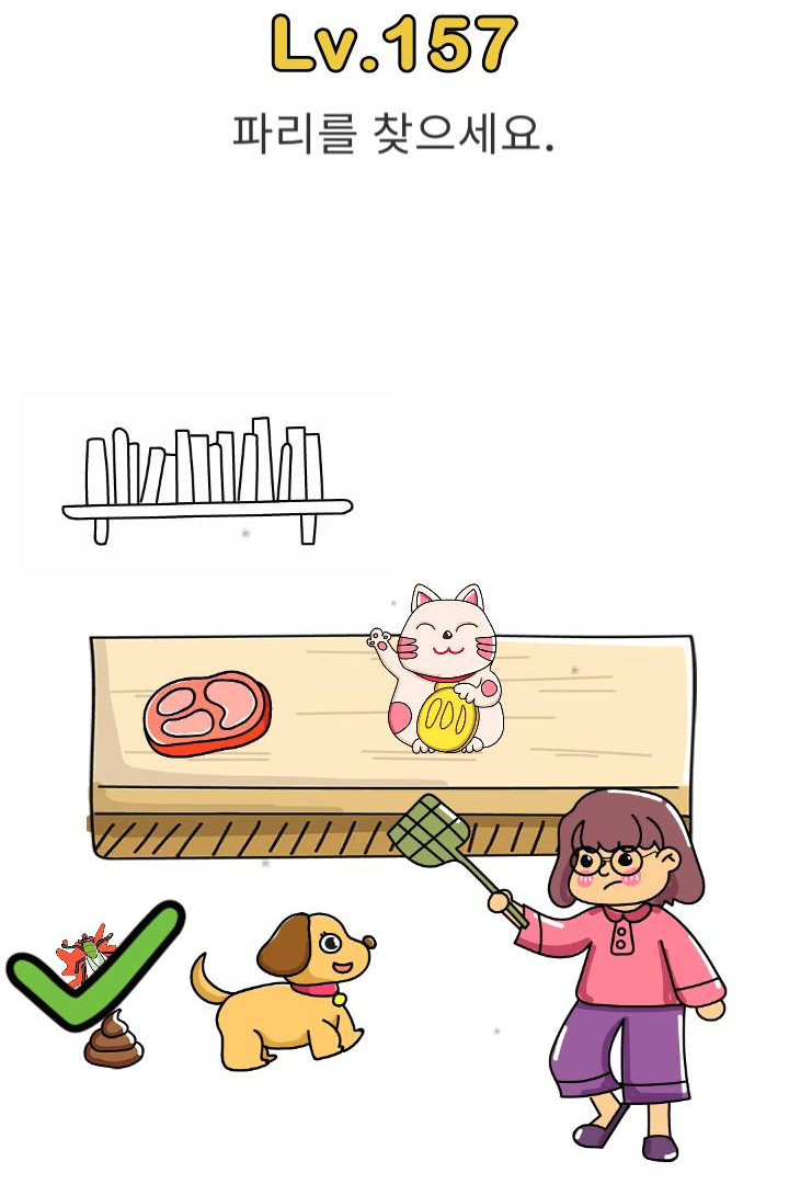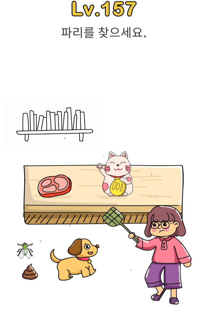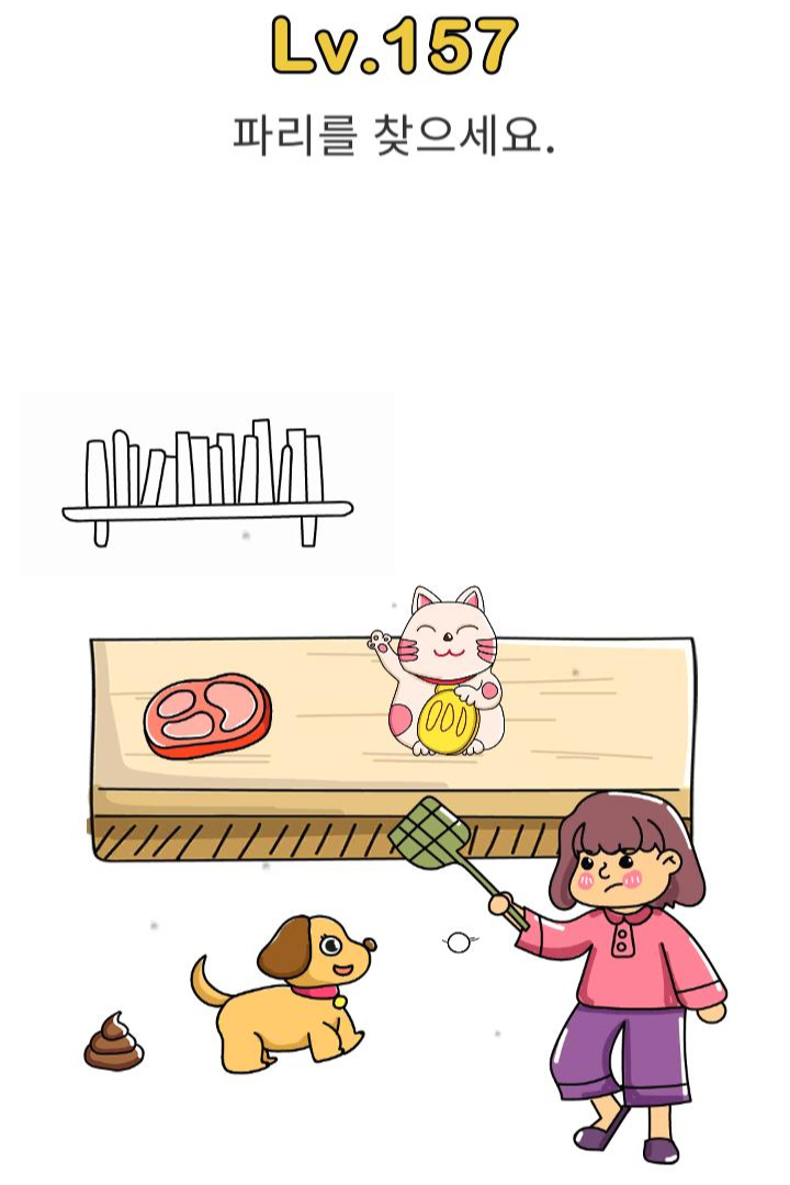 레벨164 정답 : 강아지 안경을 벗겨 사람에게 씌우면 파리가 보임