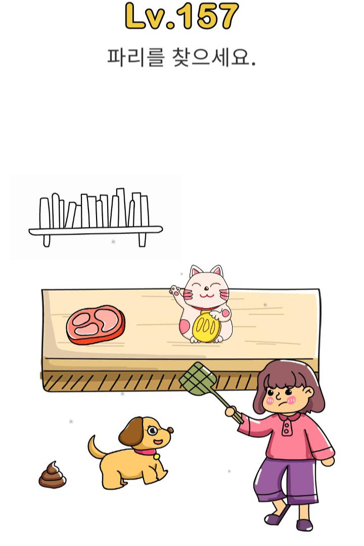 레벨164 정답 : 강아지 안경을 벗겨 사람에게 씌우면 파리가 보임