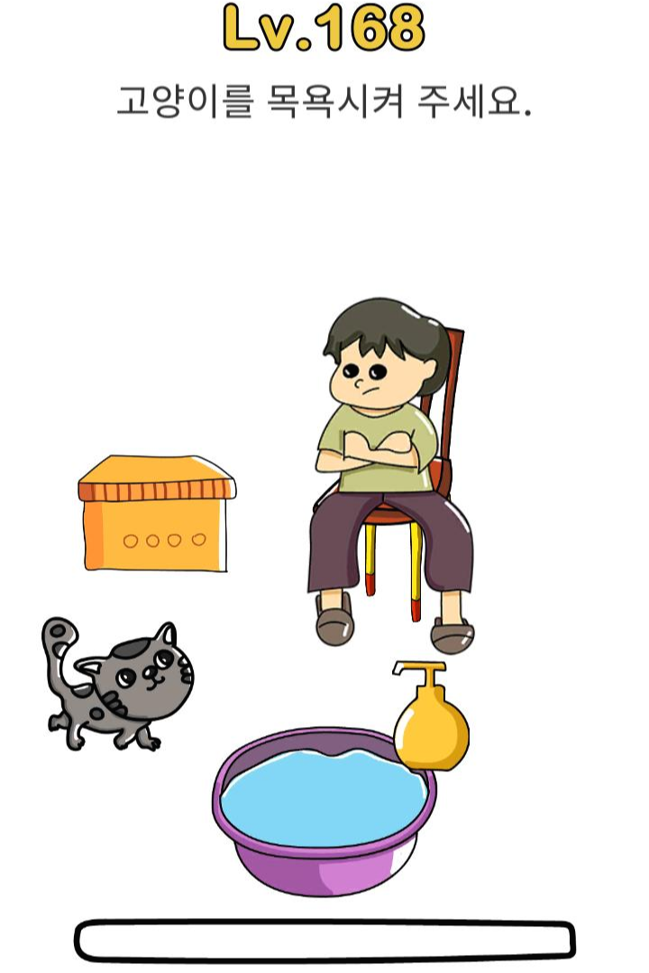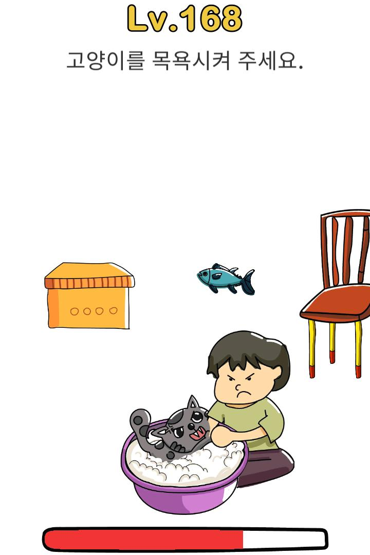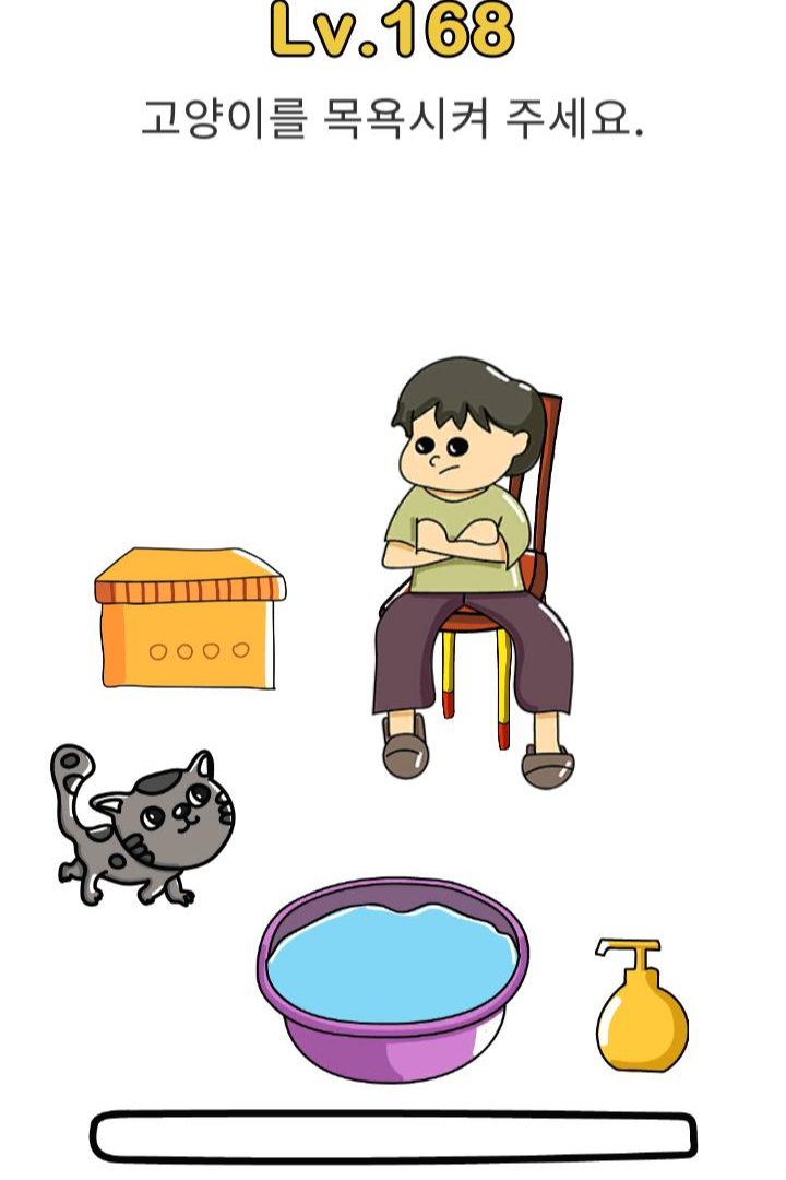 레벨218 정답 : 물에 샴푸넣고, 고양이 담그고, 의자를 치우면 나오는 생선을 고양이에게 물려 준다