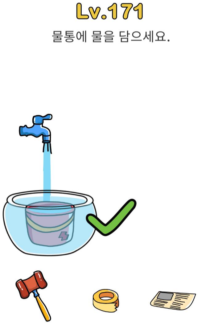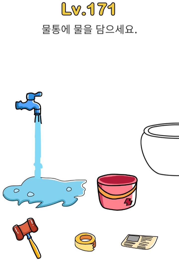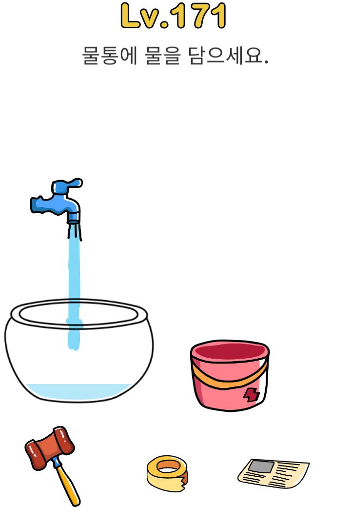 레벨100 정답 : 유리항아리를 놓고 깨진 물통을 담근다