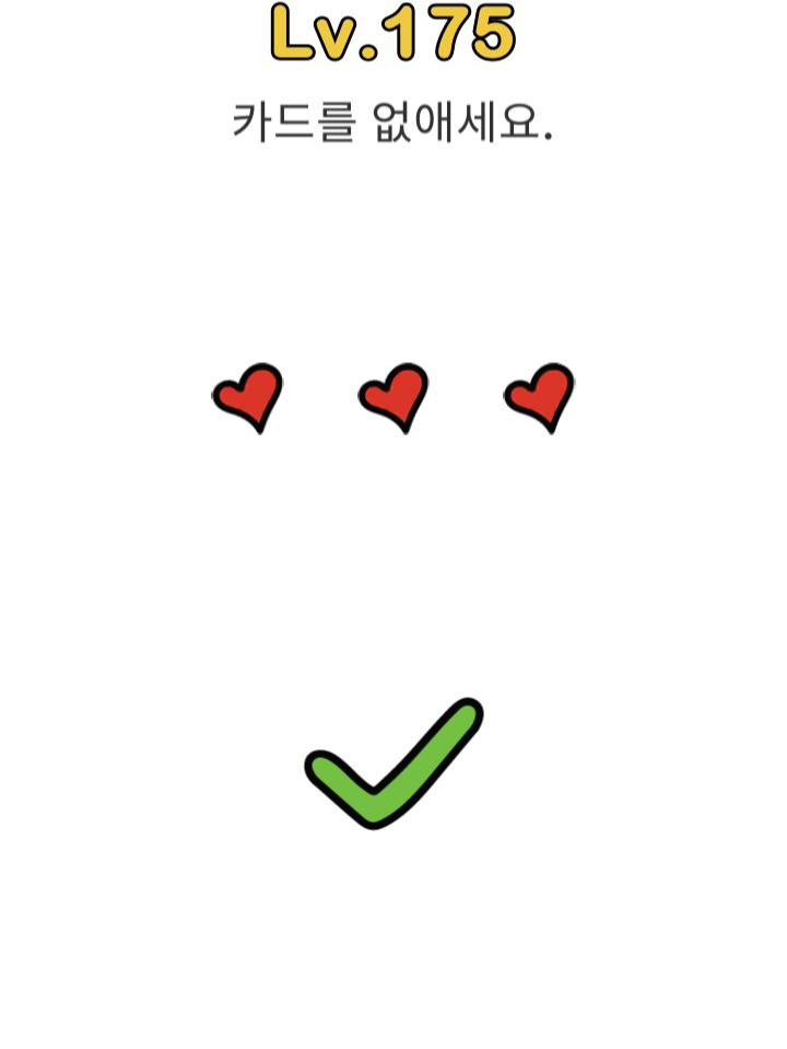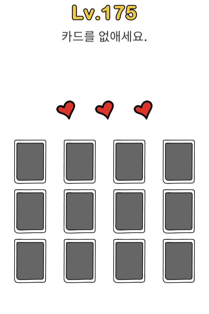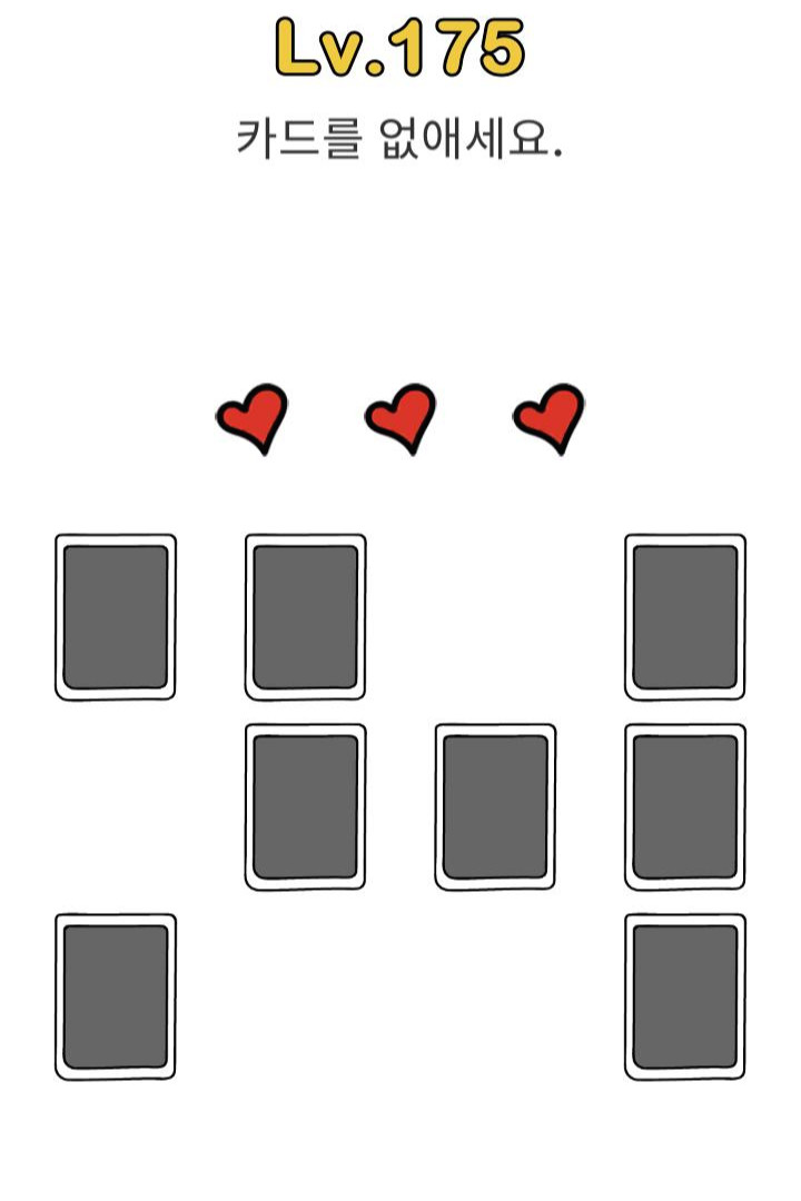 레벨179 정답 : 화면의 흰 곳을 누른채로 카드를 밀면 화면 밖으로 날라감