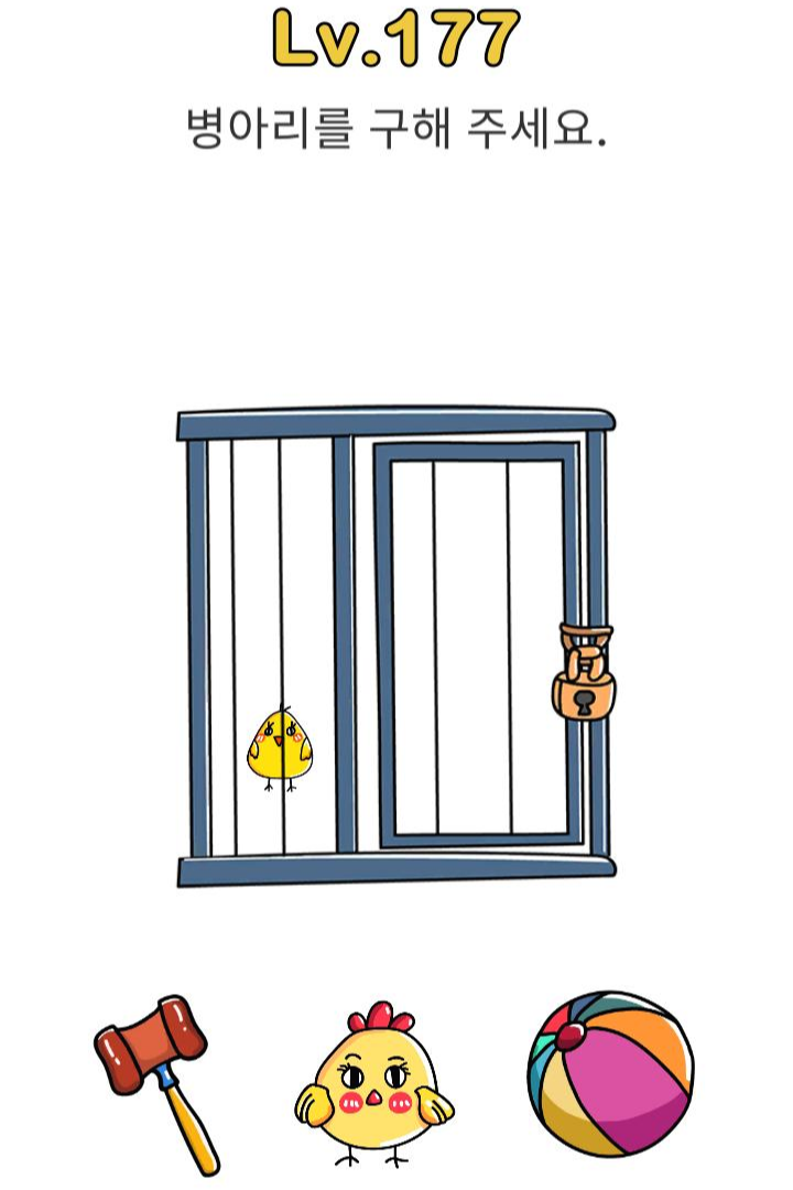 레벨181 정답 : 가장 넓은 틈 사이로 병아리를 옮기면 알아서 나옴