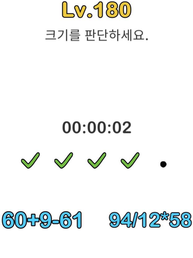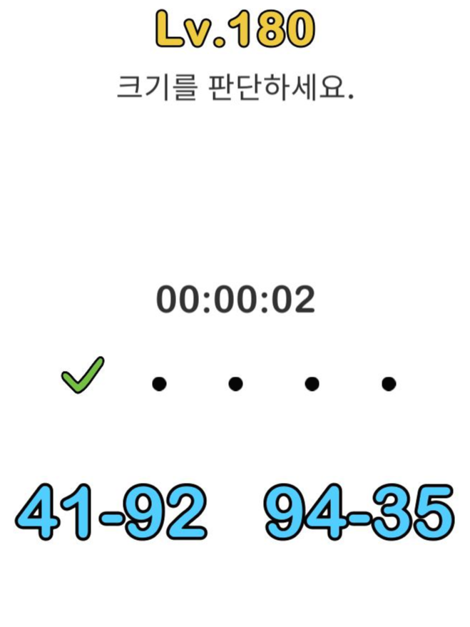 레벨184 정답 : 크기가 큰 쪽을 터치