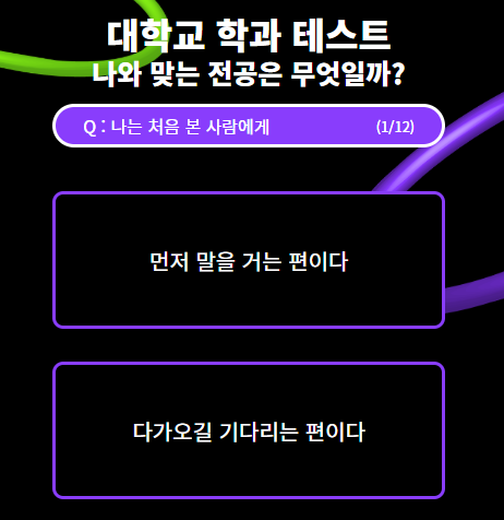 "나의 학과 찾기 테스트" 성별을 선택 후