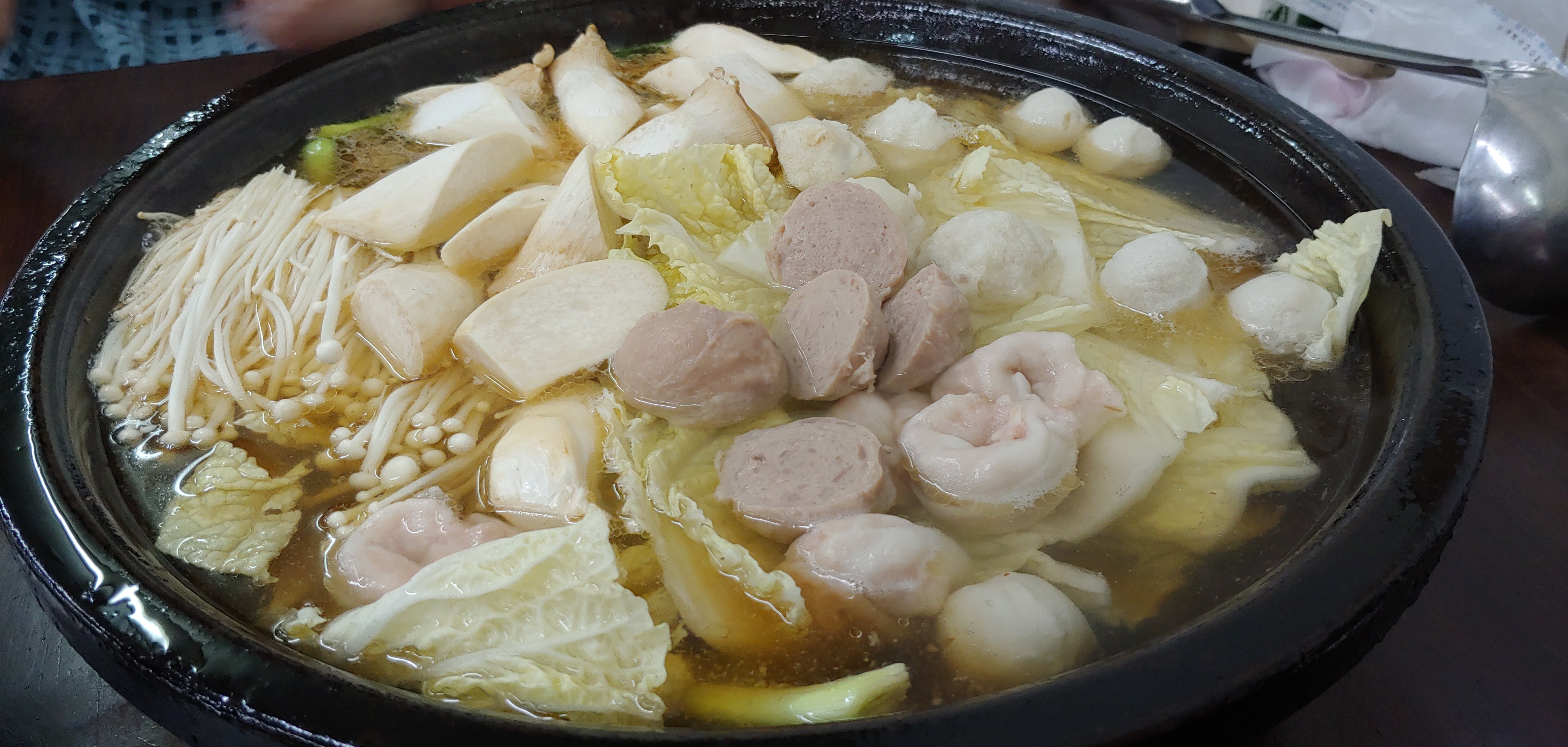계산은 인당 기본에 메뉴 추가한거로 계산하는것 같았는데 사실 잘 모르겠더라고요..ㅠㅠ 그냥 달라는데로 줬어요ㅋ 하지만 참고삼아 제가 둘이서 먹은 가격 올립니다. 엄청 배가 터지도록 먹었습니다. 각종 야채와 완자류를 넣고 끓여 먹는데요. 보기에는 허여멀건한것이..별로 맛없게 생겼는데 먹어보니 엄청 시원하고 아주 좋았습니다. 아 그리고 재료만 가지고 와서 놓으시고 다 골랐다고 하면 오셔서 끓여주십니다. 나름 순서가 있는것 같았어요..고기 볶다가 건졌다가..이거 넣고 저거 넣고 해주시고 마지막에 육수 부어줍니다. 끓으면 먹으면 됩니다.