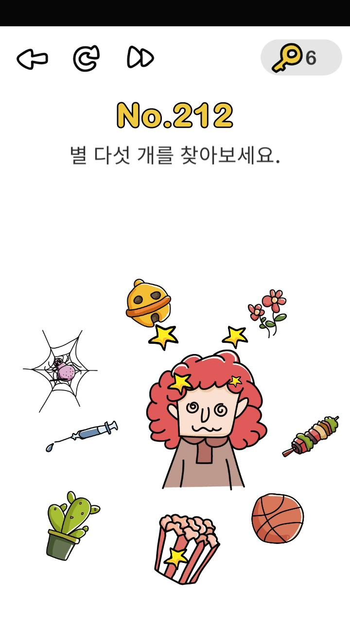 레벨214 정답 : 사람 머리를 두드려 별이 3개 나타나면 화면의 별 5개를 선택