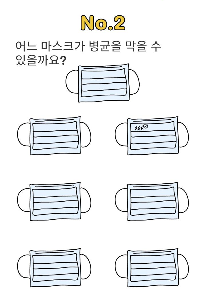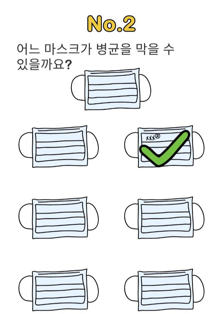 | 병균소독 Lv.1 어떻게 하면 정확하게 마스크를 벗을까요? 정답_브레인아웃 Brain Out 병균소독 1번 (0) | 2020.03.24 |