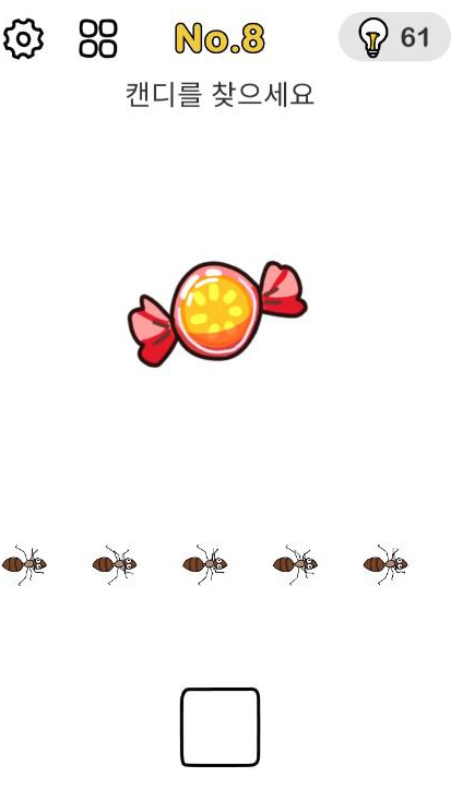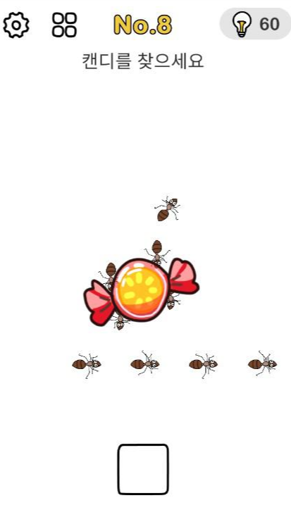 산타 도와주기 8번 정답 : 개미 4마리를 캔디방향으로 보내면 끌고 옴