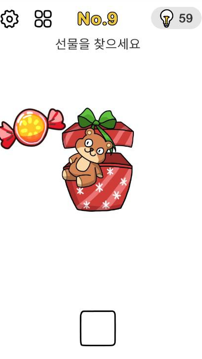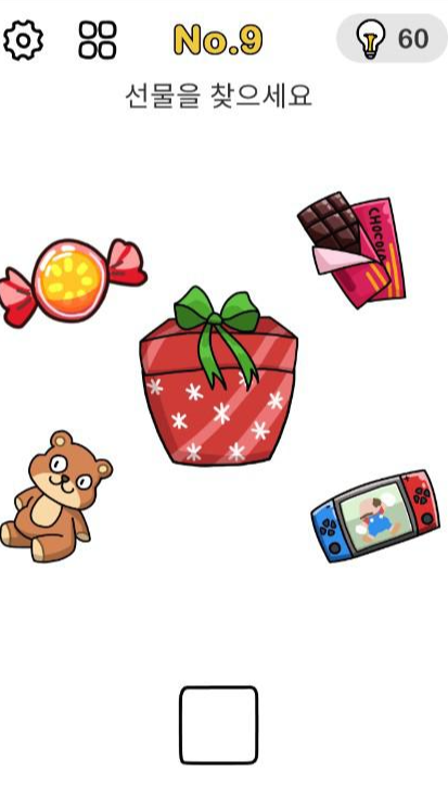 산타 도와주기 9번 정답 : 선물 상자를 열어 선물을 다 넣고 다시 닫은 상자를사각 프레임으로 이동