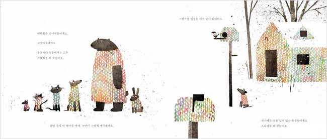 그렇다면 '나'에게는 무슨 털실이 있을까요? 책에 나온 일러스트를 보면 애너벨이 떠준 스웨터가 서로 한가닥씩 연결이 되어 있는 장면이 있습니다. 작가의 글에 나오는 내용은 아니지만 이 일러스트를 보며 털실이 옆사람에게 전달되는 무언가 일까? 전염되듯 뻗어나가는 건가? 라는 생각도 했습니다. 저에게도 뻗어나갈 선한 영향력이 있을까요? 그게 무엇이든 솔직히 자신이 없지만, 이 책을 읽으며 한 번 고민하고 다시 생각해 보게 되었습니다.