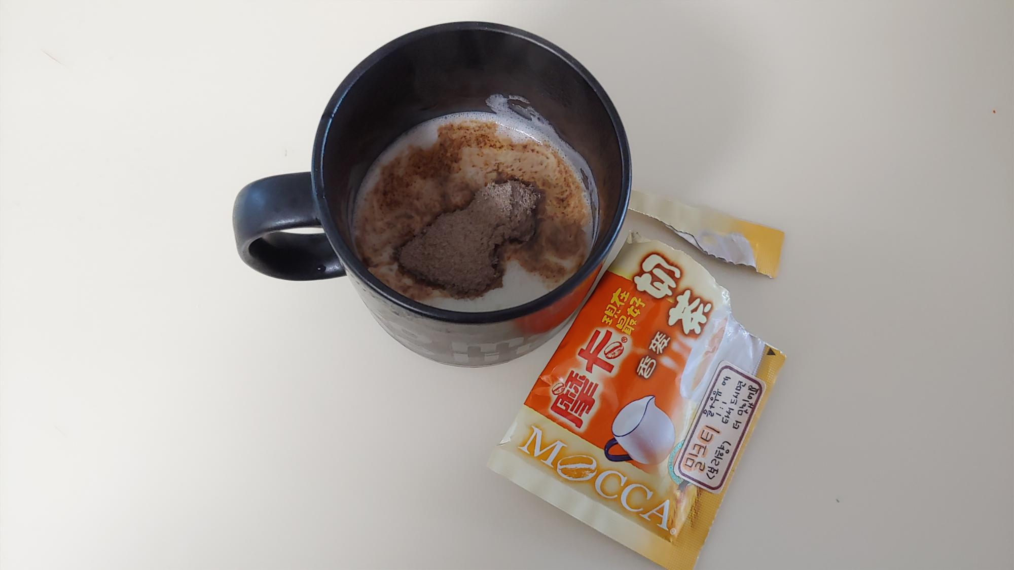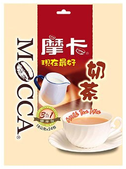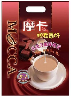MOCCA 밀크티 입니다. "모카"가 브랜드 이름인 것 같습니다. 오리지널 / 향미(보리향) /모카(코코아) 이렇게 3종류인거 같고요..저는 향미로 샀습니다..주홍색봉지.. 고소하고 맛있어요^^