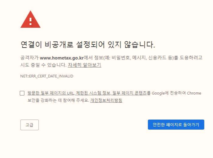 이 사이트는 안전하지 않습니다. 등등 말만 바뀌고
