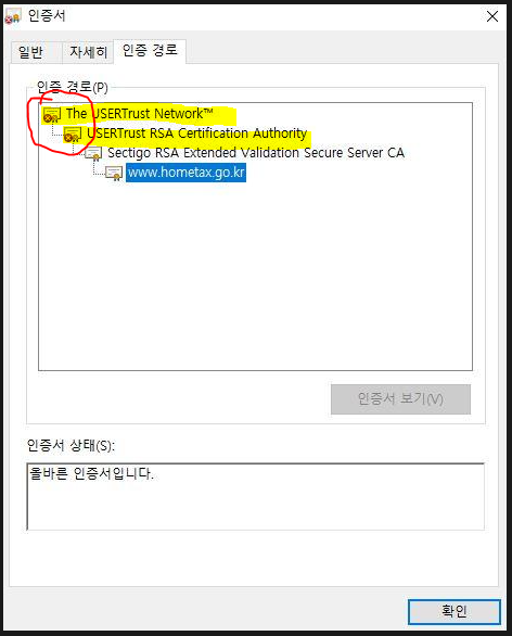 그 아래 5월 30일자로 만료된 AddTrust 인증서도 보이네요..ㅡㅡ;;