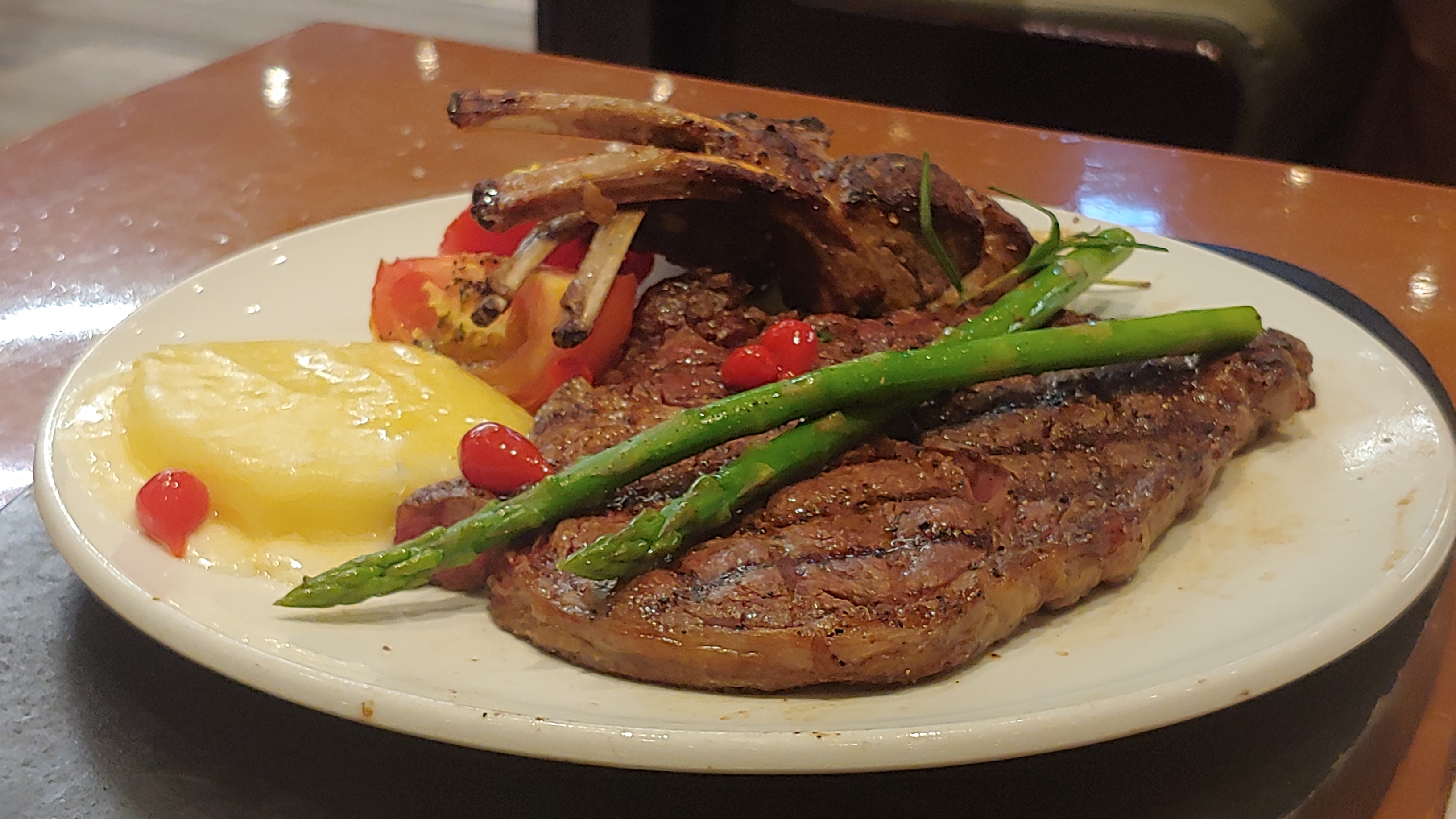 램 스테이크인데, 랍스터와 램 중에 선택 가능합니다.