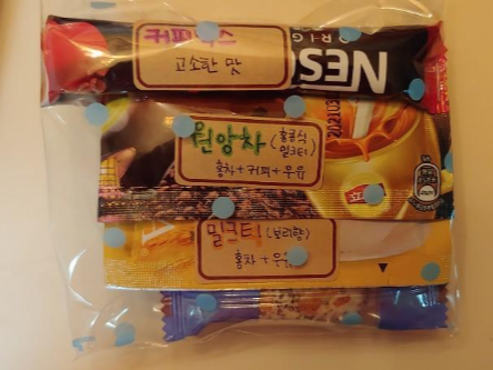 이것 역시 대만 까르푸에서 구매한 것들인데요. 다이소에서 비닐 포장지를 사서 하나씩 담았답니다.^^ 하나씩 맛보라고 지인들께..ㅋㅋㅋ 캐롤베이커리에서 산 참깨누가캔디도 함께 넣었어욬. (캐롤베이커리 참깨누가캔디가 궁금하시면 여기 클릭) 이번에 추천할 제품은 네스카페 오리지날 커피믹스 입니다. 잉? 하시는 분들 있으실텐데 추천글 읽어보시고 맘이 동요하신다면 한번 사보세요^^