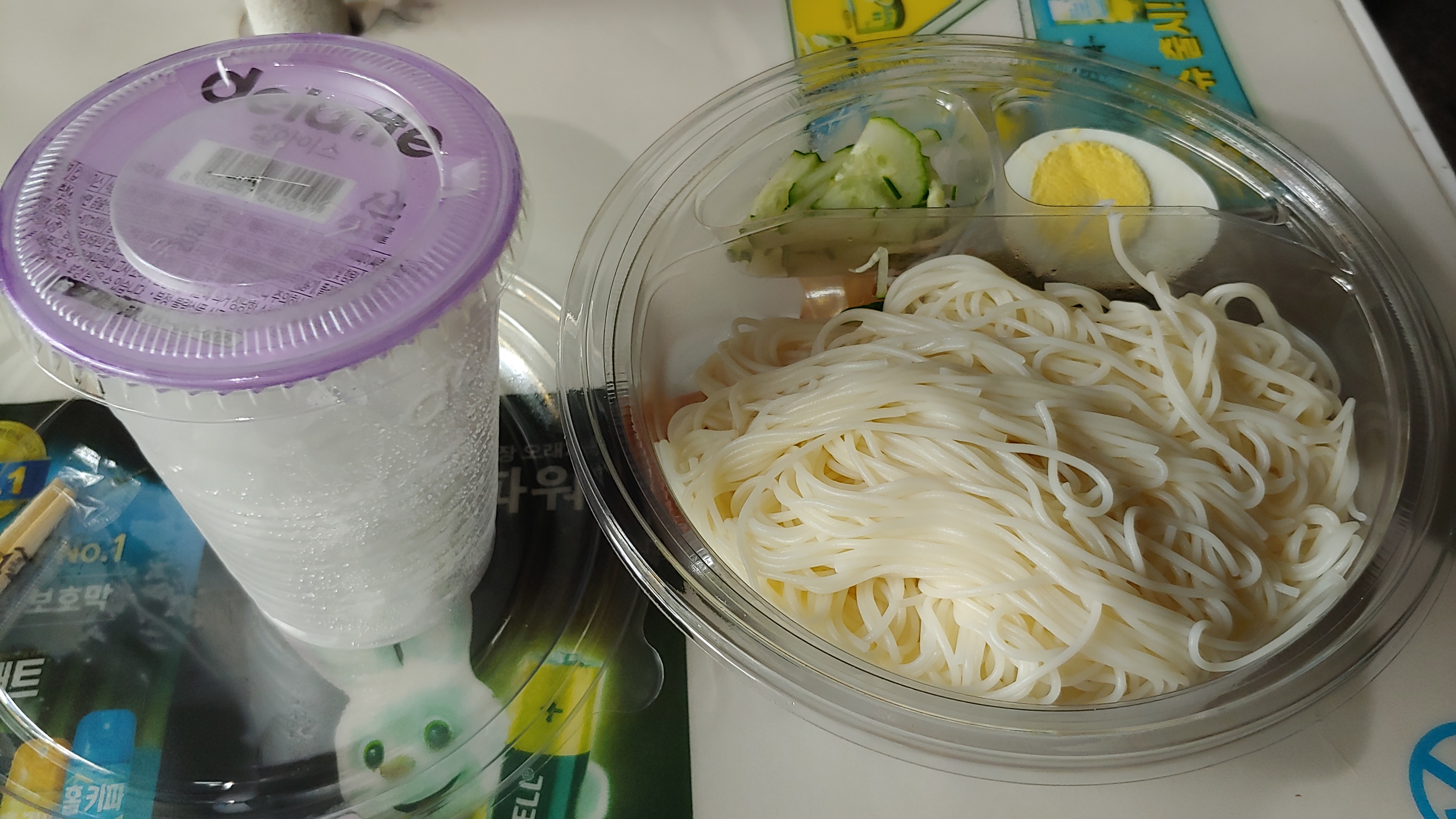 뚜껑을 똭! 여니까..소면, 달걀, 오이채!