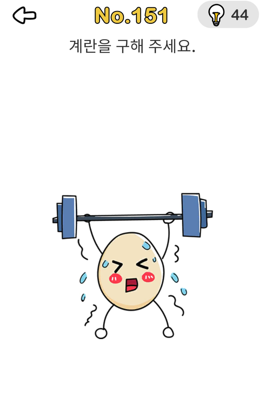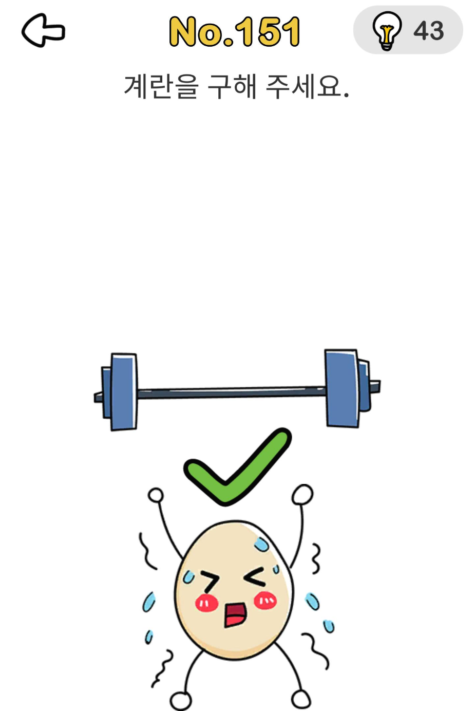 레벨 151 정답 : 한 손으로 아령을 잡고 다른 손으로 계란을 내립니다