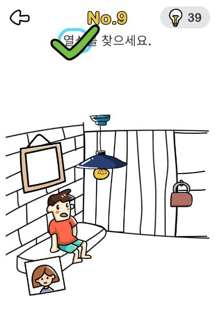 탈출 레벨 9 정답 : 문제의 '열쇠'를 터치