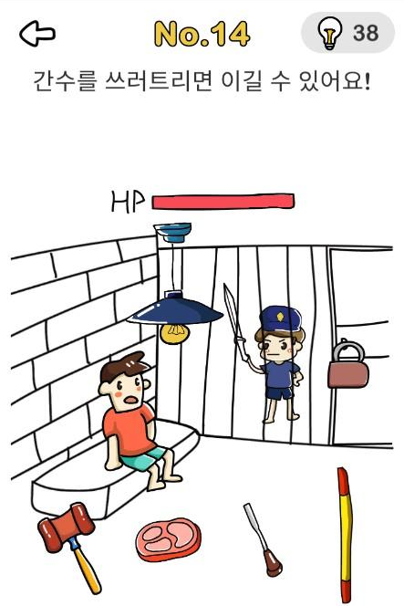 탈출 레벨 14 정답 : 간수의 칼을 뺏어서 공격
