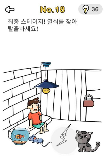 탈출 레벨 18 정답 : 바닥의 틈을 두드려 쥐가 나오면 고양이가 일어남