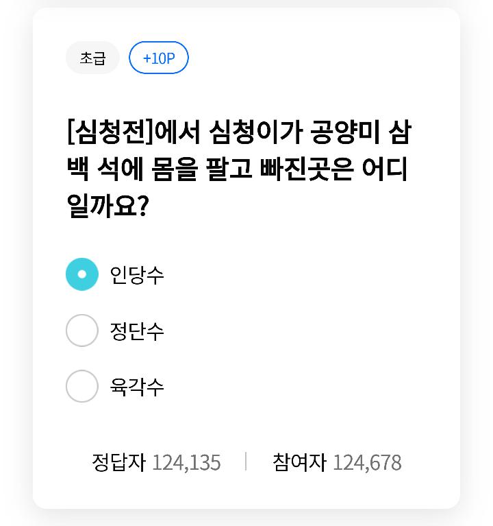 심청전에서 심청이가 공양미 삼백석에 몸을 팔고 빠진 곳은 아디일까요?