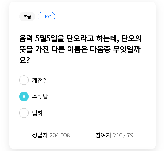 음력 5월5일을 단오라고 하는데, 단오의 뜻을 가닌 다른 이름은 다음중 무엇일까요?