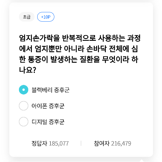 엄지손가락을 반복적으로 사용하는 과정에서 엄지뿐만 아니라 손바닥 전체에 심한 통증이 발생하는 질환을 무엇이라 하나요?
