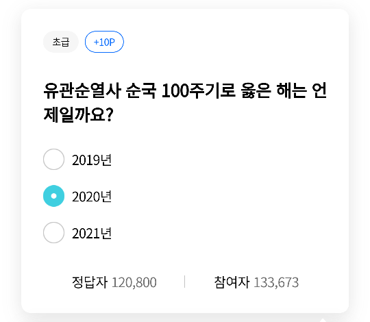 유관순열사 순국 100주기로 옳은 해는 언제일까요?