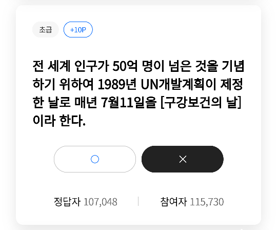 전 세계 인구가 50억 명이 넘은 것을 기념하기 위하여 1988년 UN개발계획이 제정한 날로 먀년 7월11일를 [구강보건의 날]이라 한다.