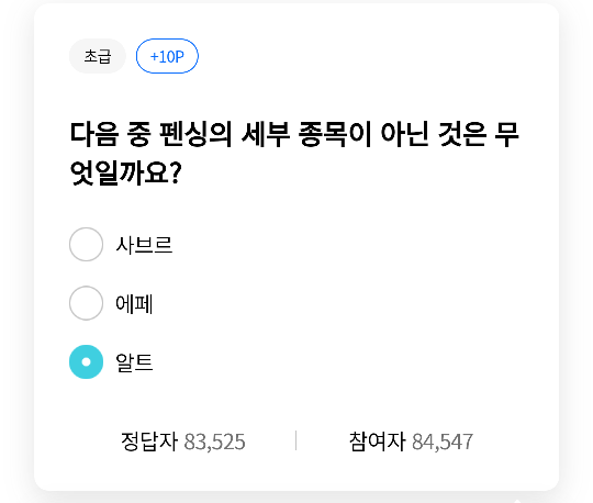 다음 중 펜싱의 세부 종목이 아닌 것은 무엇일까요?