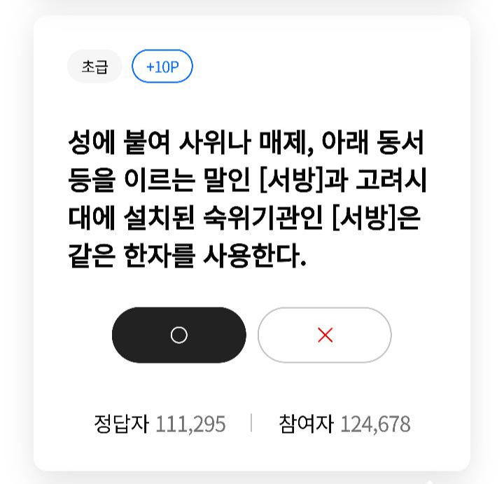 성에 붙여 사위나 매제, 아래 동서 등을 이르는 말인 [서방]과 고려시대에 설치된 숙위기관인 [서방]은 같은 한자를 사용한다.