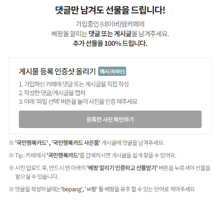 No 추첨! 100% 증정! 베팡 알리기 이벤트! > 이벤트 | 베팡 | 국민행복카드 임산부 선물은, bepang