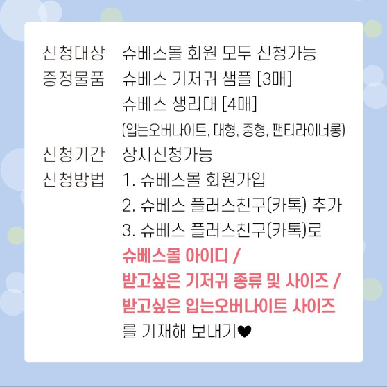 🔉슈베스 기저귀ㆍ생리대 샘플 무료증정이벤트🔉