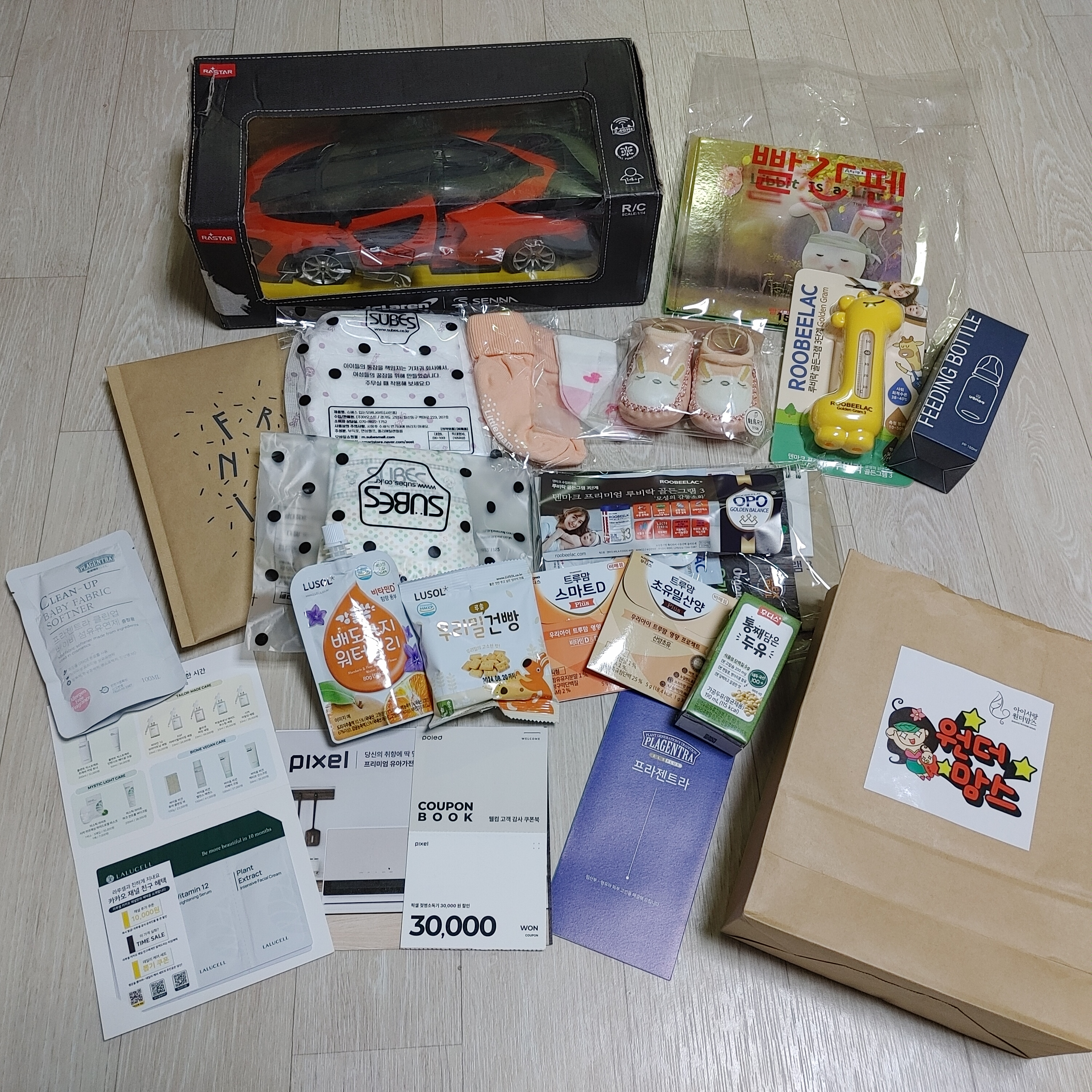 참여선물: 루비락과일이유식, 디데이캘린더, 각종쿠폰 및 전단지, 젖병, 라루셀 에센스 샘플, 트루맘 영양제, 후디스 두유, 아기 섬유유연제, 루솔 배도라지 워터젤리, 루솔 우리밀 건빵, 슈베스 신생아 기저귀, 슈베스 입는 오버나이트, 프랭클린 샘플팩, 빨간펜 유아도서