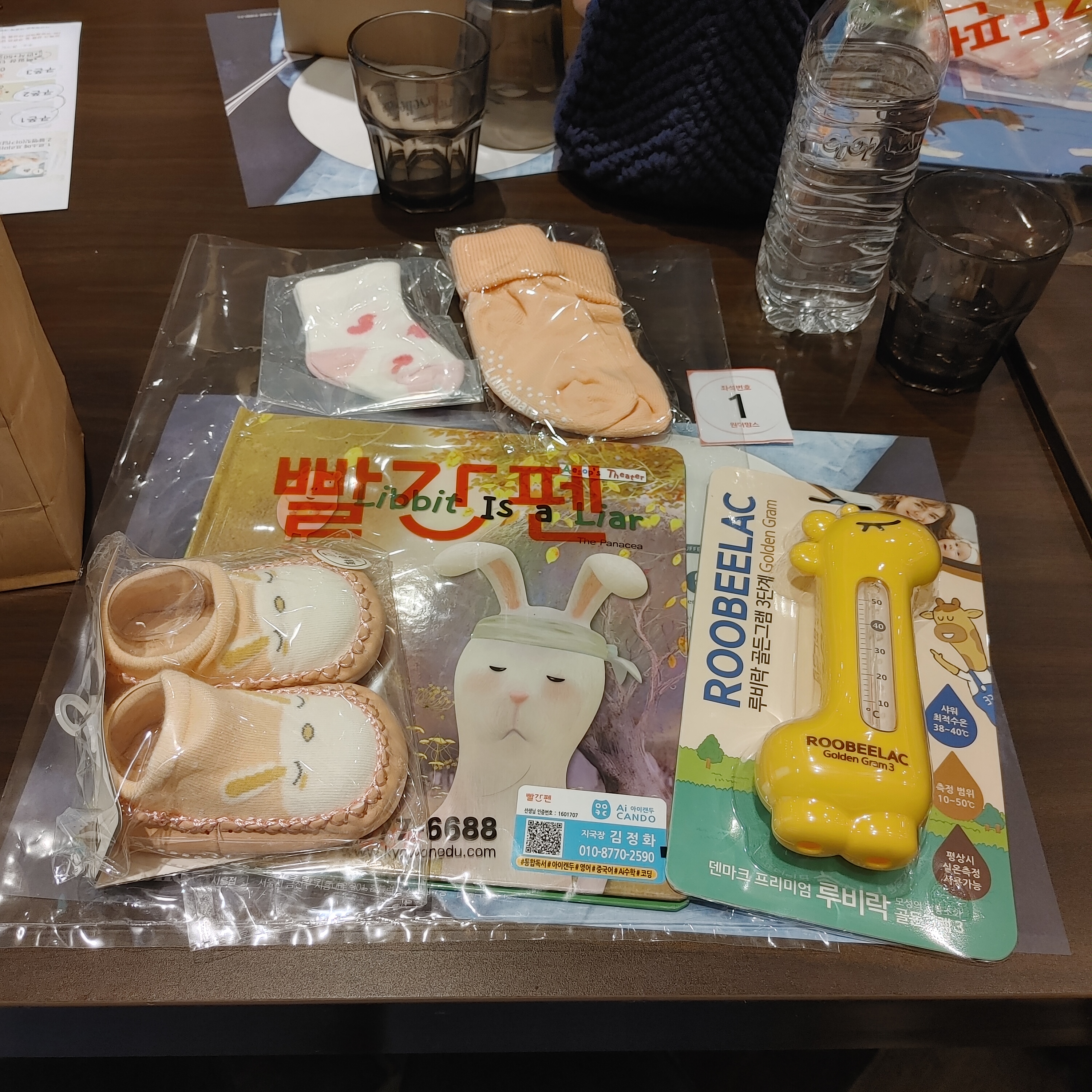 이벤트 참여경품: 아기양말, 보행기 신발, 탕온도계