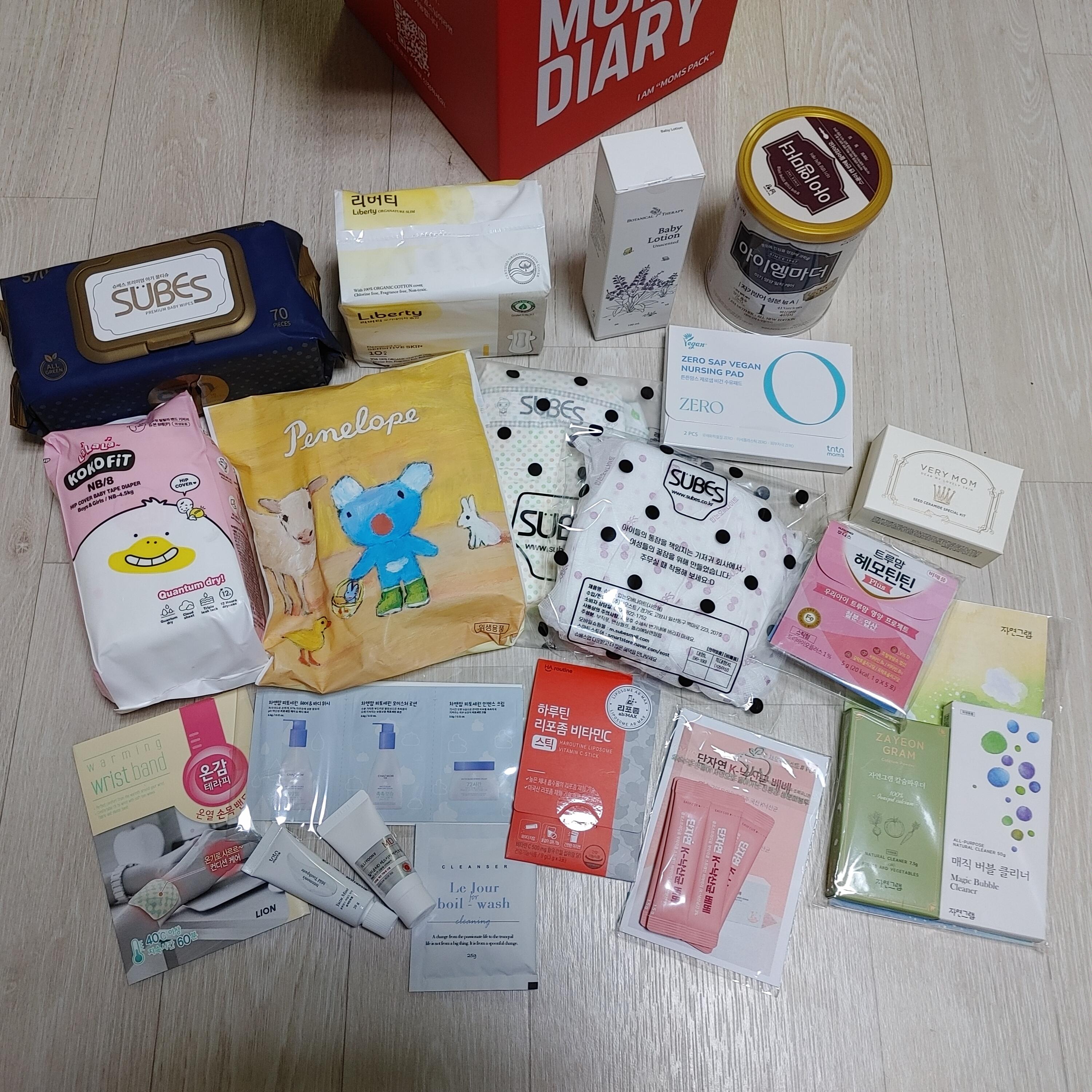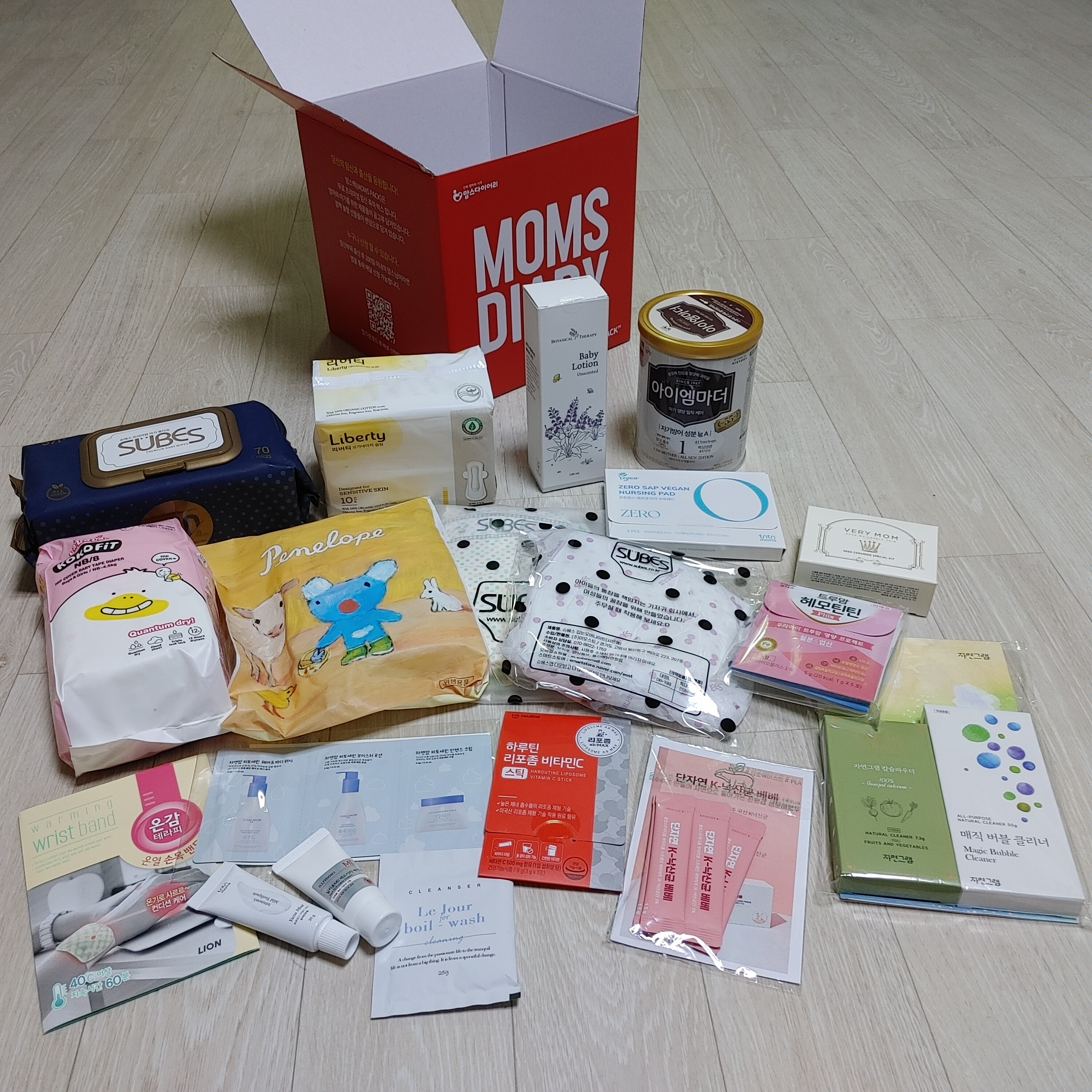 아이엠마더분유1단계, 베이비로션, 일리윤튼살크림, 온열손목밴드, 르주르삶는클리닝, 슈베스물티슈, 코코핏기저귀, 페네로페기저귀, 슈베스기저귀, 슈베스오버나이트, 리버티생리대, 화장품샘플, 베리맘여행키트, 하루틴리보좀비타민C, 후디스트루맘분유영양제, 튼튼맘스치약, 단자연유산균, 자연그램매직버블클리너&칼슘파우더, 튼튼맘스제로샙비건패드
