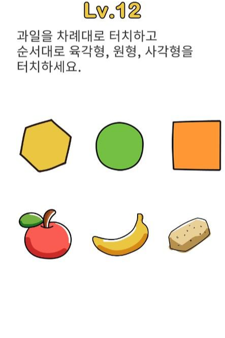 레벨12 정답 : 과일 2개 선택 후 도형 차례로 선택