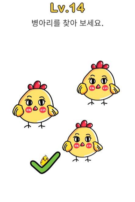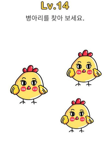 레벨14 정답 : 암탉을 잡고 흔들면 뒤에서 병아리가 나옵니다