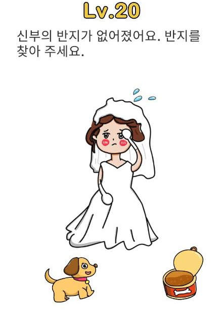 레벨124 정답 : 간식 뚜껑을 밀어올리고 강아지에게 먹이면 응가로 나옵니다.