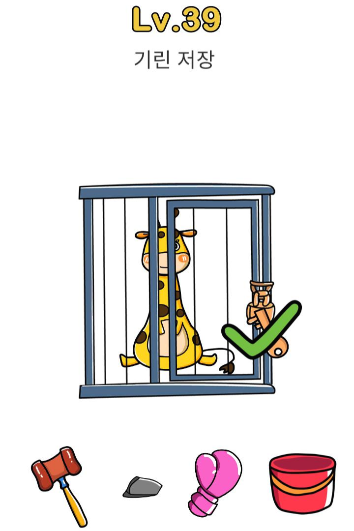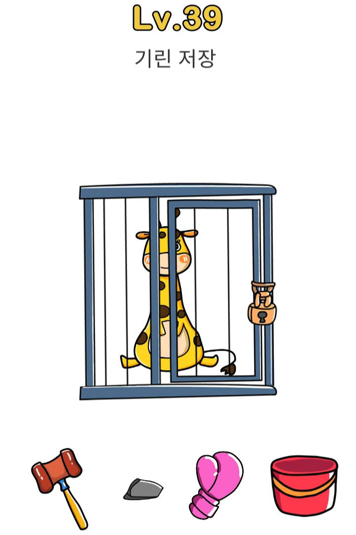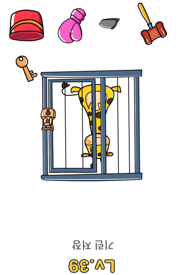 레벨39 정답 : 화면을 뒤집고 흔들면 바구니에서 열쇠가 떨어짐. 그걸로 열면 됨